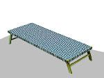 Preschool cot with a frame made of beech wood and folding legs, painted with ecological varnish, woven with a colourful belts "50" measurements: 120cm x 55cm for younger children and 140cm x 55cm for older children.